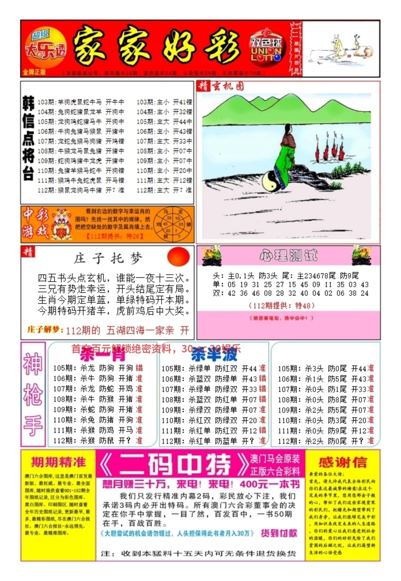 | 112期:六肖中特【龙蛇虎马狗牛】开:龙02准 | |||