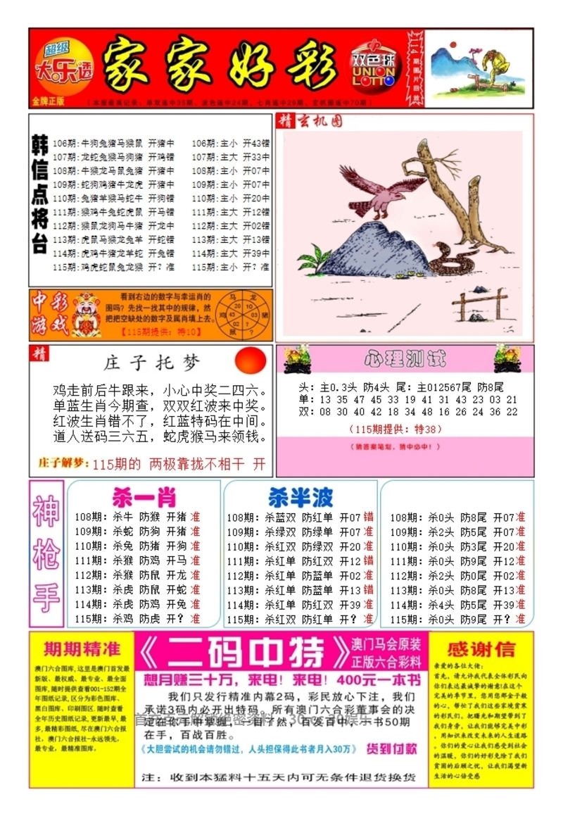 115期:三头中特『0头1头3头』开:蛇01准 |